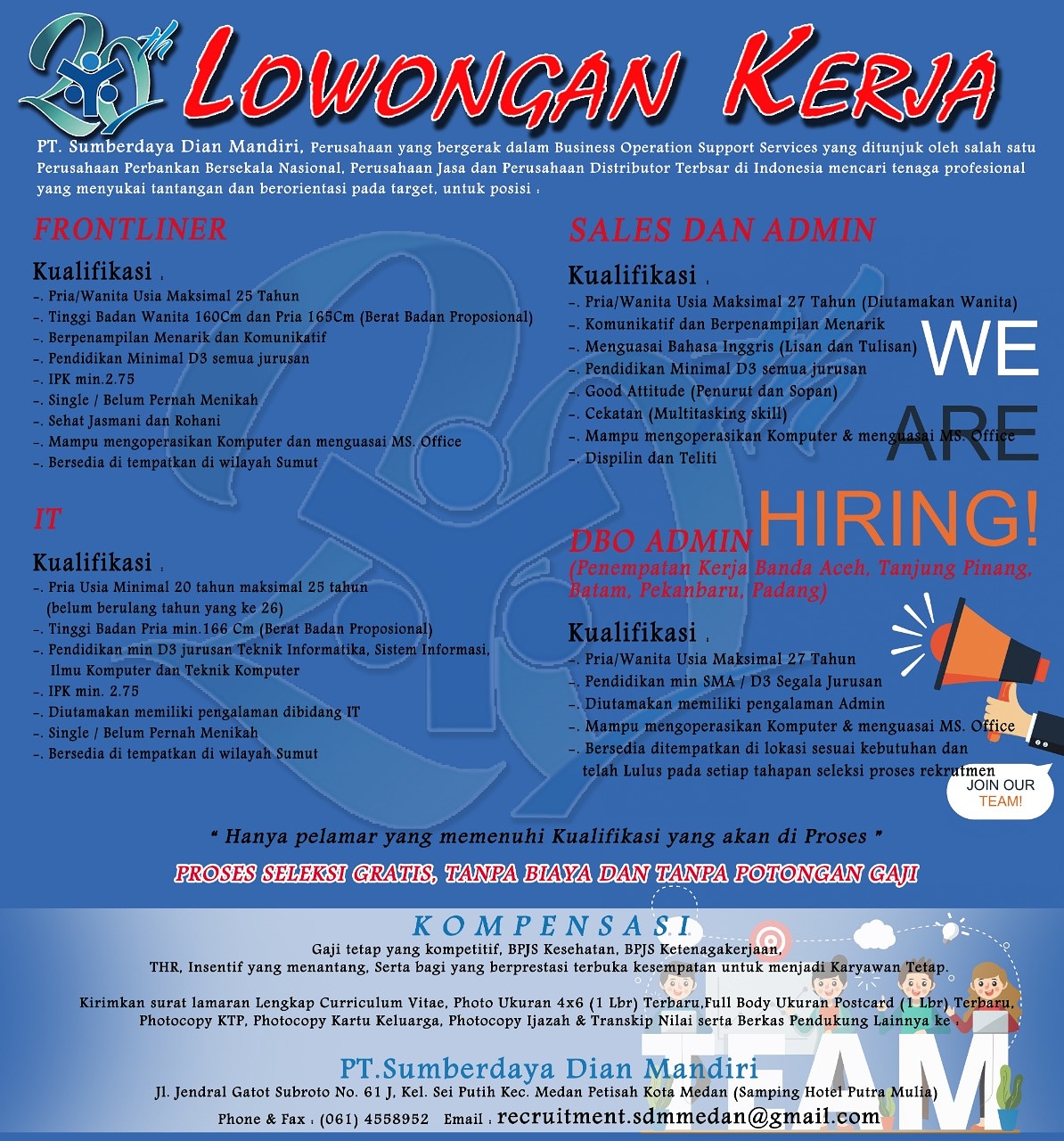Info Loker Medan Terbaru Di Pt Sumberdaya Dian Mandiri