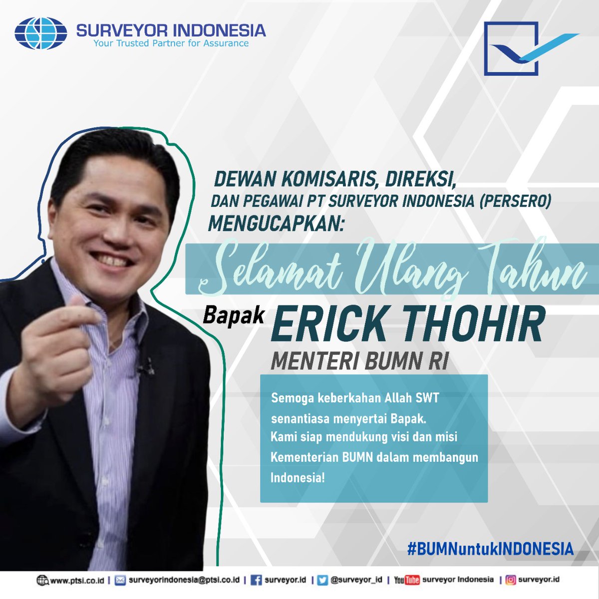 Surveyor Indonesia Twitterren Pt Surveyor Indonesia Persero Mengucapkan Selamat Ulang Tahun Bapak Erickthohir Menteri Bumn Semoga Keberkahan Allah Swt Senantiasa Menyertai Bapak Kami Siap Mendukung Visi Dan Misi Kemenbumn Dalam
