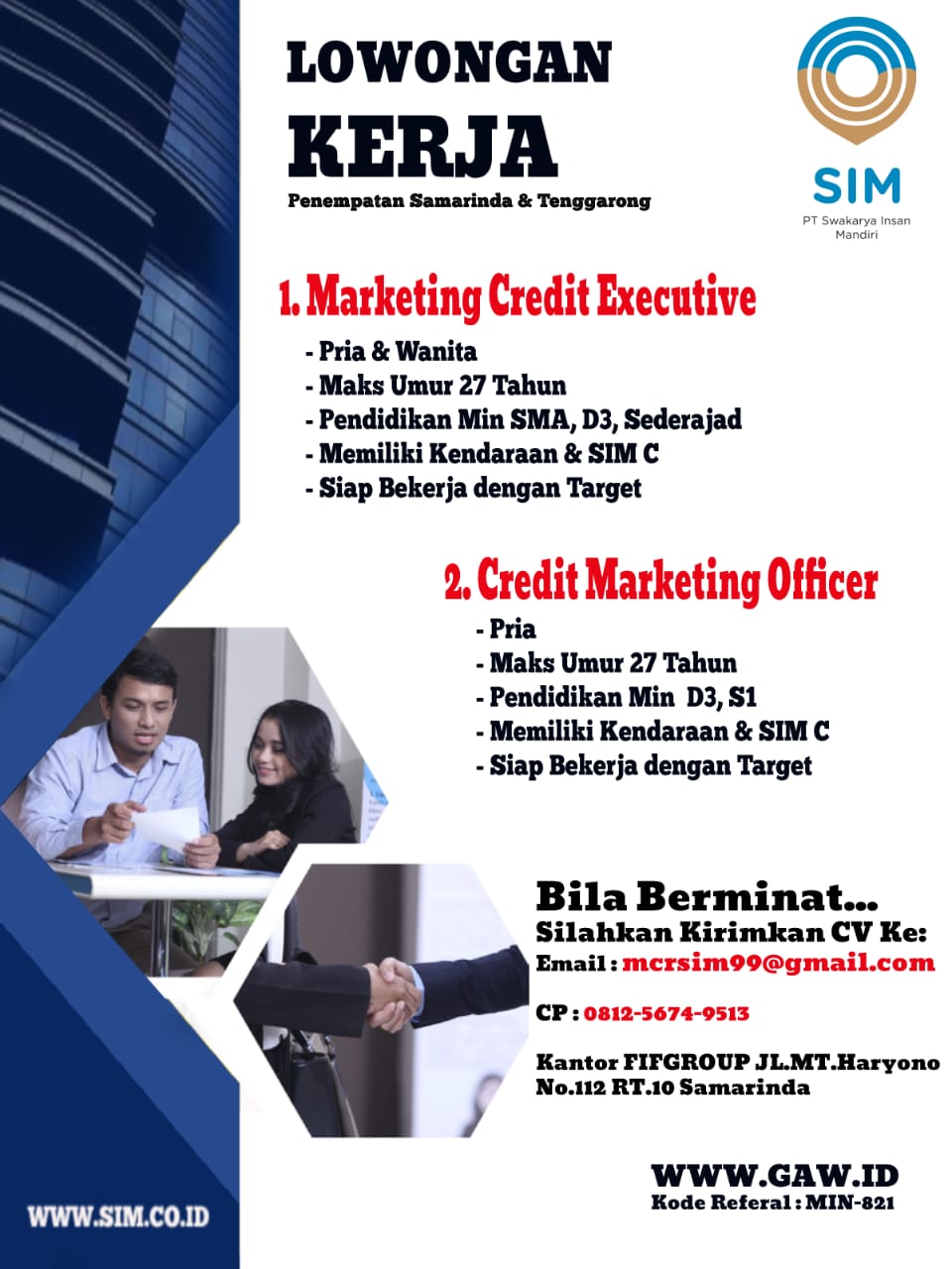 Lowongan Kerja Pt Swakarya Insan Mandiri Samarinda Tenggarong Lowongan Kerja Kalimantan Timur Terbaru