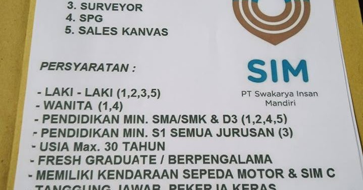 Lowongan Kerja Pt Swakarya Insan Mandiri Blog Pak Pandani