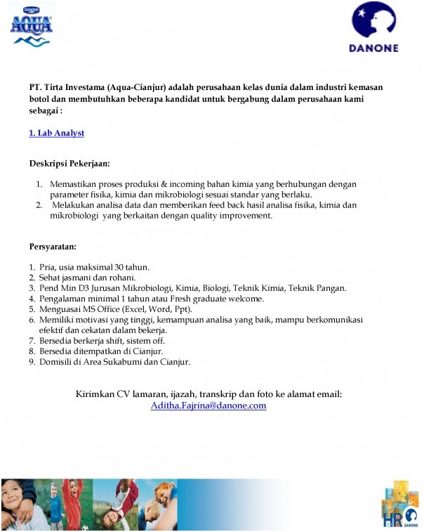 Lowongan Kerja Pt Tirta Investama Danone Aqua Wilayah Jakarta Loker