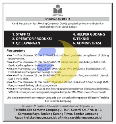 Lowongan Pt Torabika Eka Semesta Lampung Mayora Pusat Info Lowongan Kerja 2021