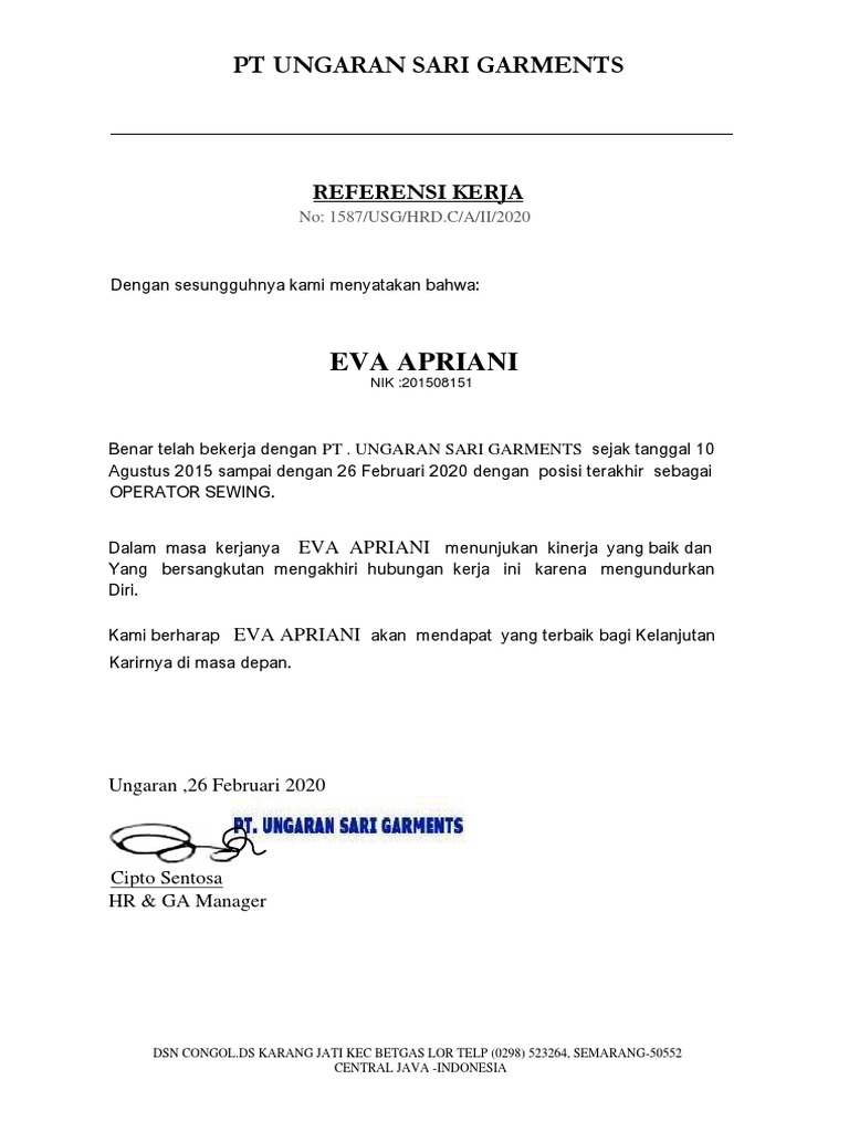 21 Ungaran Sari Contoh Surat Pengunduran Diri Karyawan Pabrik Garmen Pictures Irlashop