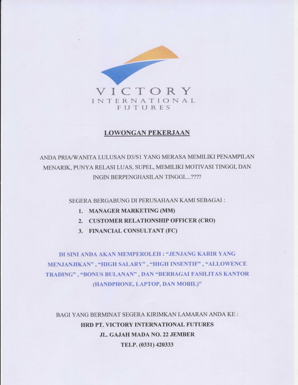 Pt Victory International Futures Mataram Lowongan Pekerjaan Pt Victory International Futures Cabang Mataram 2016