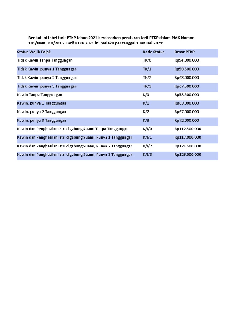 Tarif Ptkp 2021 2021