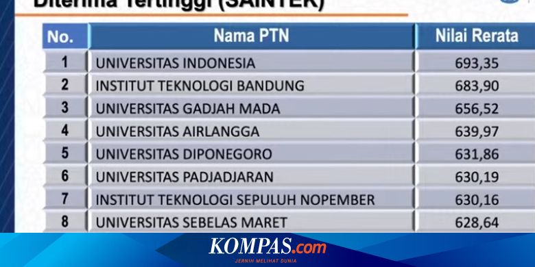 10 Ptn Dengan Nilai Rerata Diterima Tertinggi Di Kelompok Saintek Okezone Tren