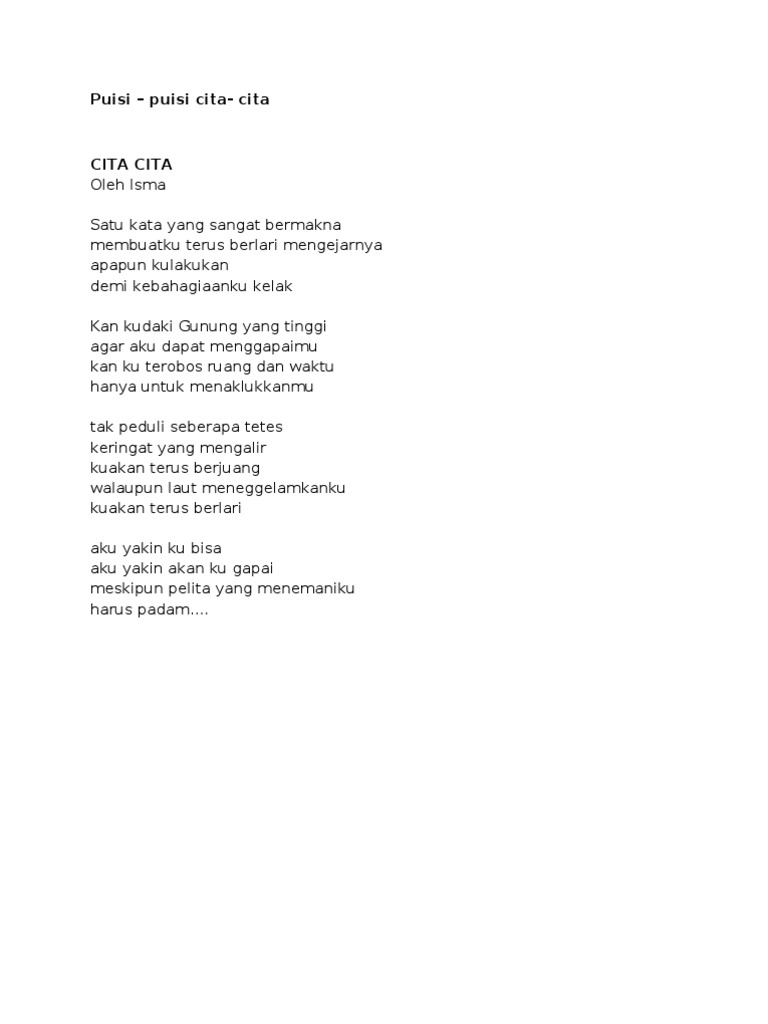 Jawaban Puisi Cita Citaku Yang Kamu Cari Infotexno