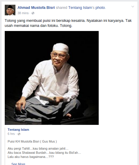Puisi Gus Mus Aku Pergi Tahlil Ternyata Hoax Sang Pencerah
