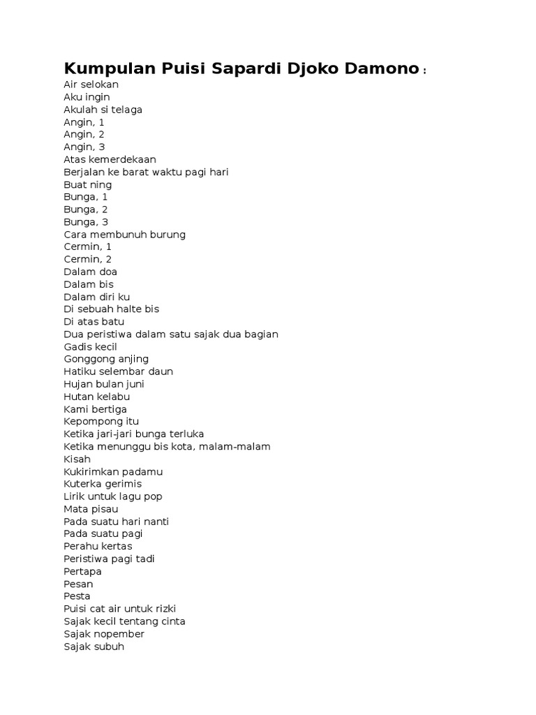 Kumpulan Puisi Sapardi Djoko Damono Docx Document