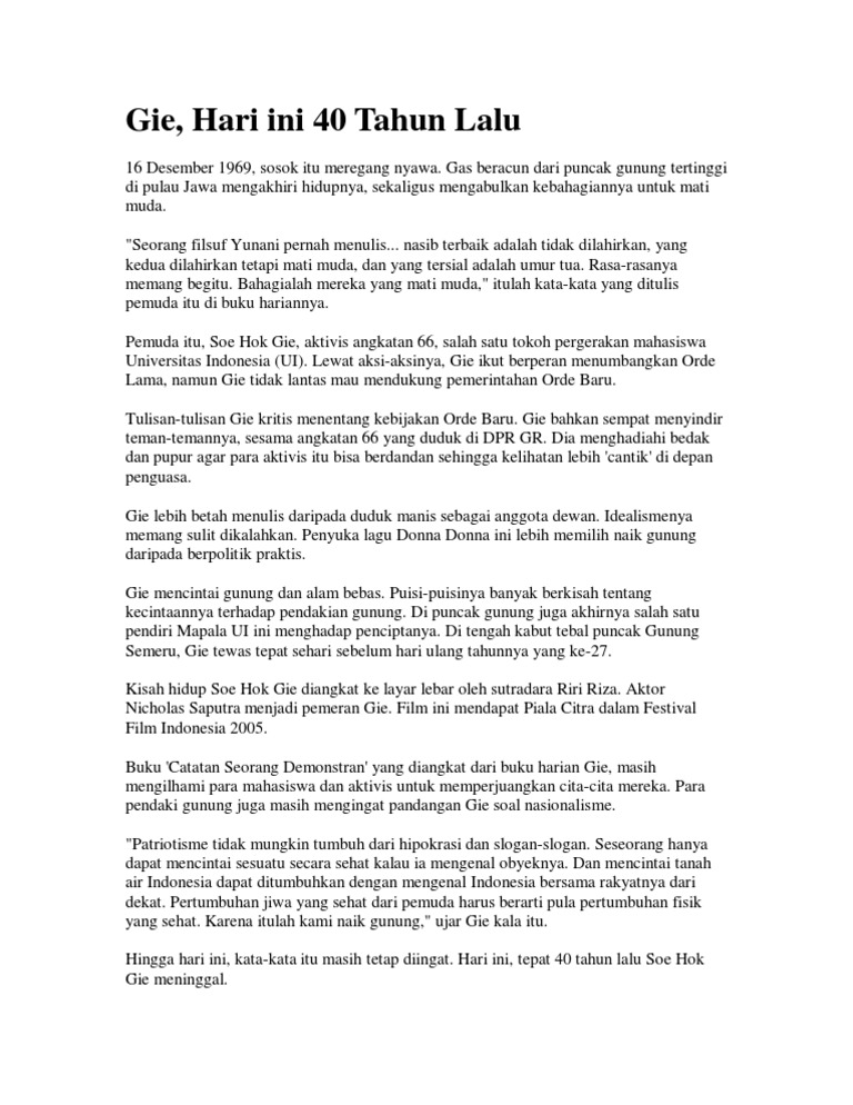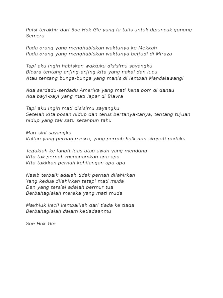 Puisi Terakhir Dari Soe Hok Gie Yang Ia Tulis Untuk Dipuncak Gunung Semeru Download Pdf