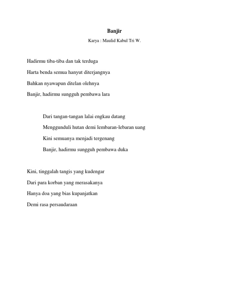 Contoh Puisi Berjudul Banjir Dan Parafrasanya
