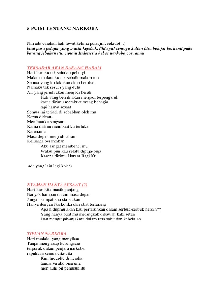 Halaman Unduh Untuk Puisi Bahaya Narkoba Kumpulan Puisi