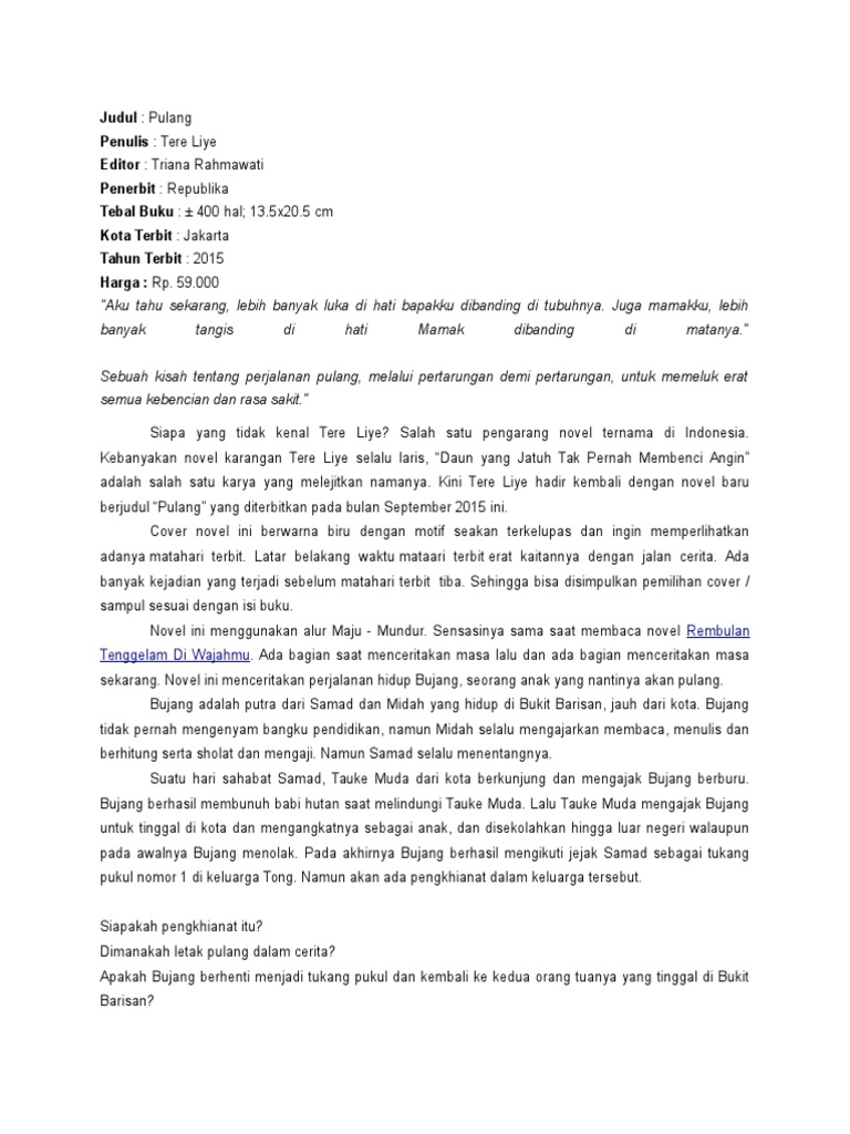 Review Novel Pulang Karya Tere Liye Magungakbar Com