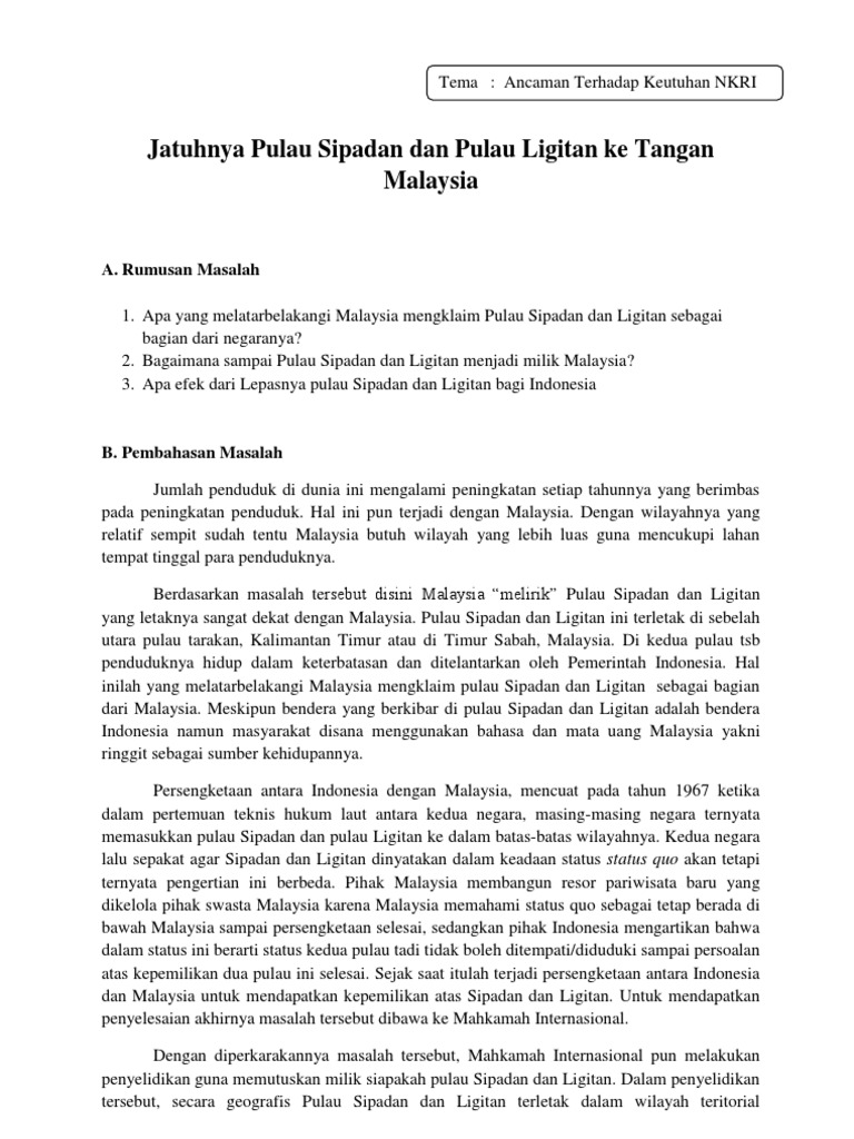 Diplomasi Indonesia Malaysia Dalam Kasus Kepemilikan Pulau Sipadan Dan Ligitan Pdf Download Gratis