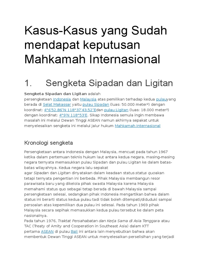Pdf Persengketaan Pulau Sipadan Dan Ligitan Yang Diselesaikan Oleh Mahkamah Internasional International Court Of Justice