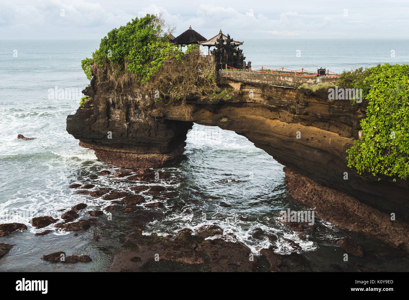 Sacred Balinese Temple Tanah Lot Pura Batu Bolong On The Edge Of A Cliff At Coastline With Hole In The Rock Traditional Style And Architecture Of Ba Stock Photo Alamy
