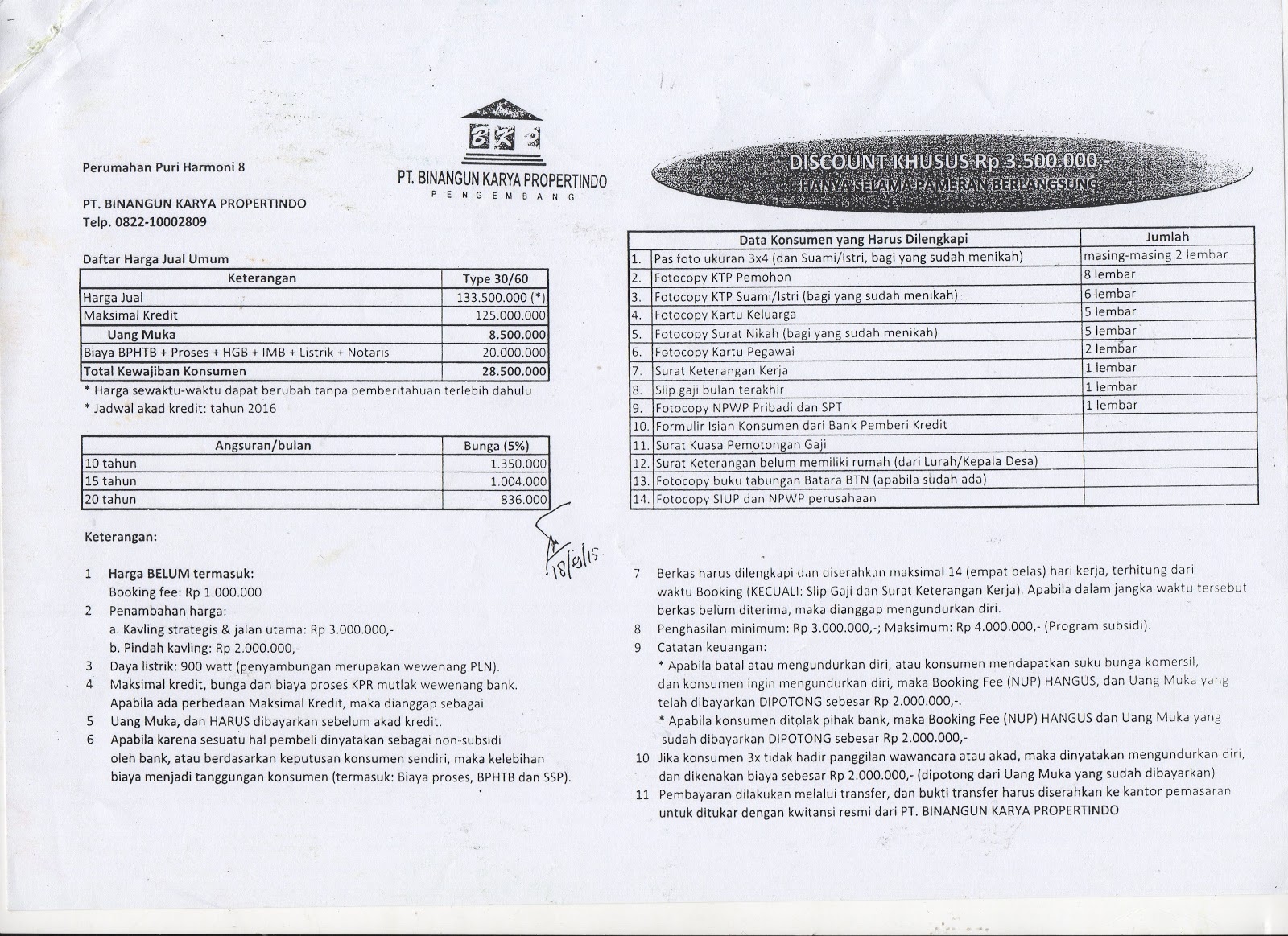 Daftar Harga Puri Harmoni 8 Bulan November 2021