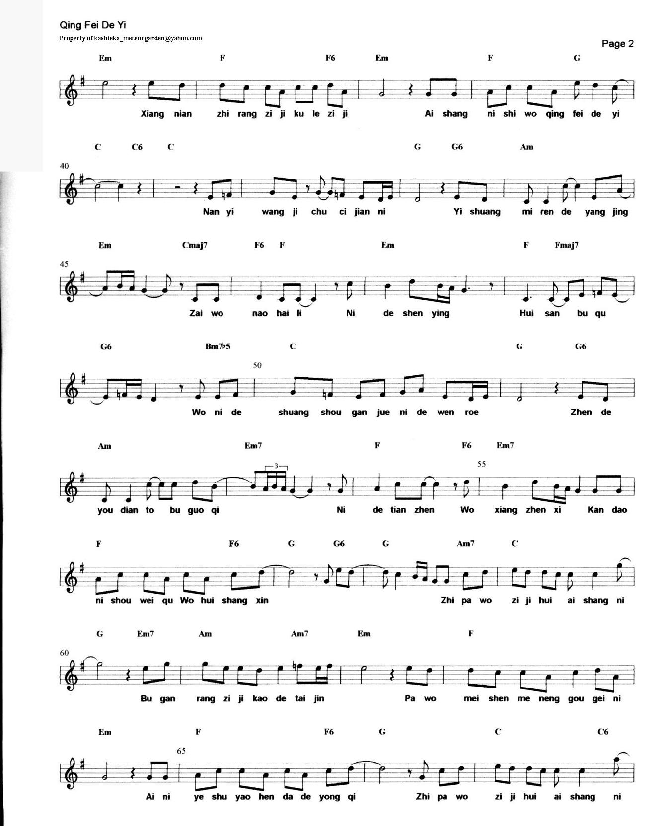 Music Sheet Harlem Yu Qing Fei De Yi Meteor Garden
