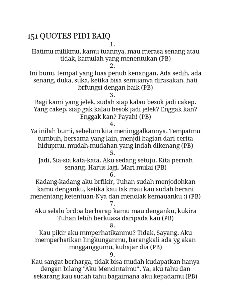 Kumpulan Quotes Pidi Baiq Terbaik Lengkap Alfabetis