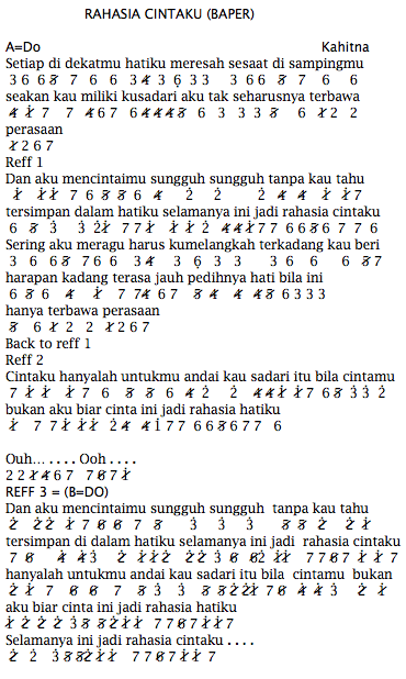Not Angka Pianika Lagu Kahitna Rahasia Cintaku