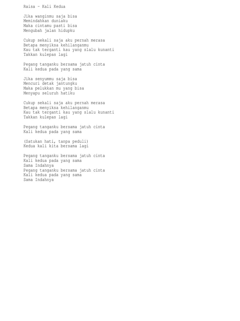 Lirik Lagu Kali Kedua Raisa Lirik Hostze Lirik Lagu Lengkap