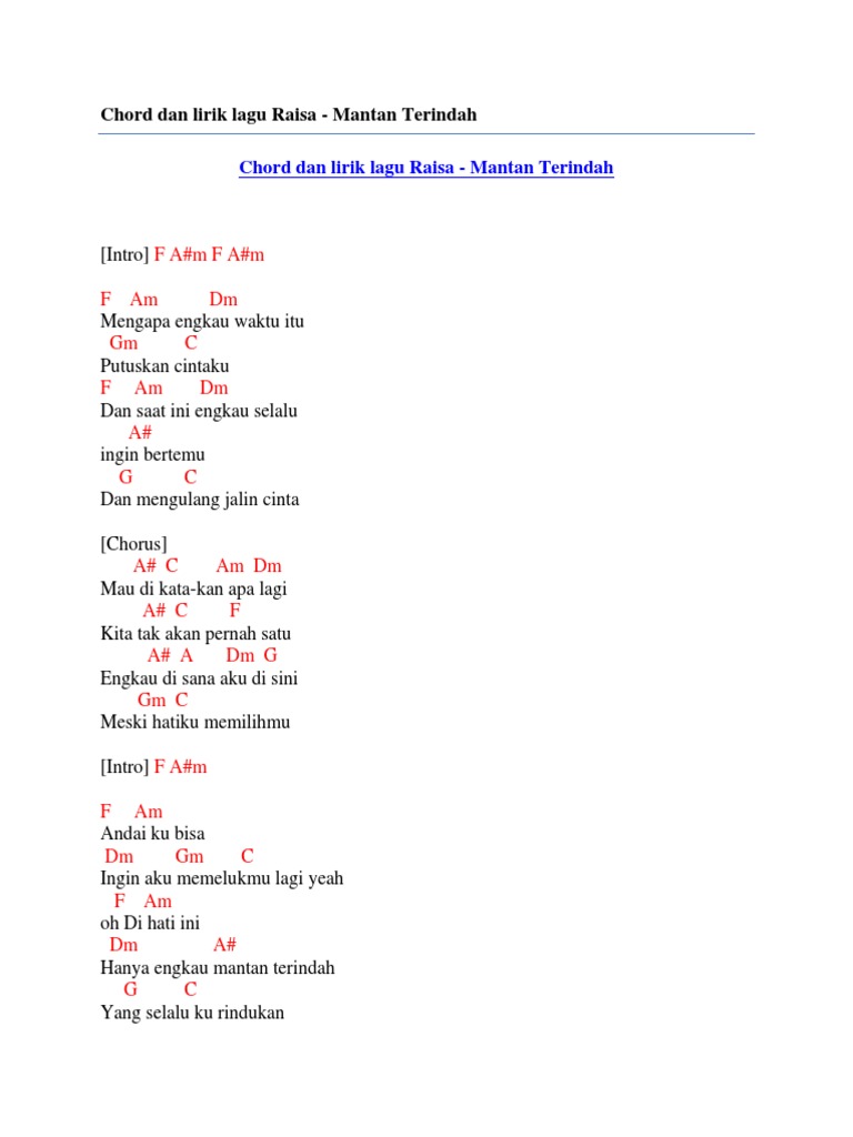 Chord Mantan Terindah Raisa Chord Arsip Yuk Mulai Hidupdarikarya
