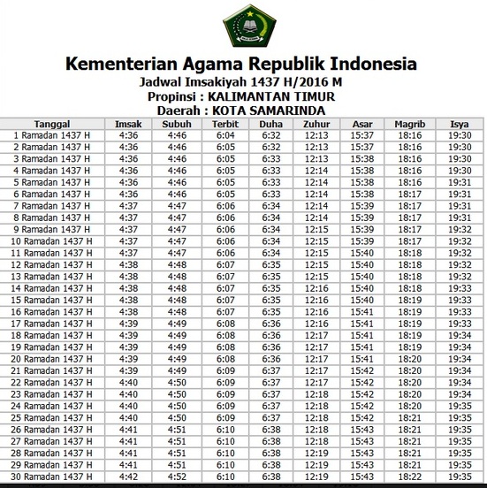 Jadwal Imsakiyah Ramadhan 1437 H 2016 M Seluruh Wilayah Indonesia Simomot