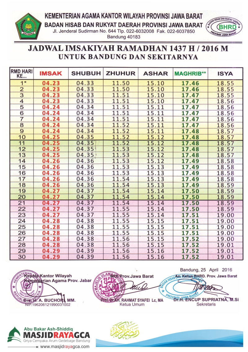 Jadwal Imsakiyah Puasa Ramadhan 1437 H 2016 M Kota Bandung Masjid Abu Bakar Gca