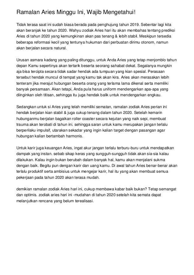 Ramalan Zodiak Aries 2020 Terbaru Cinta Uang Karir Kesehatan Diedit Com