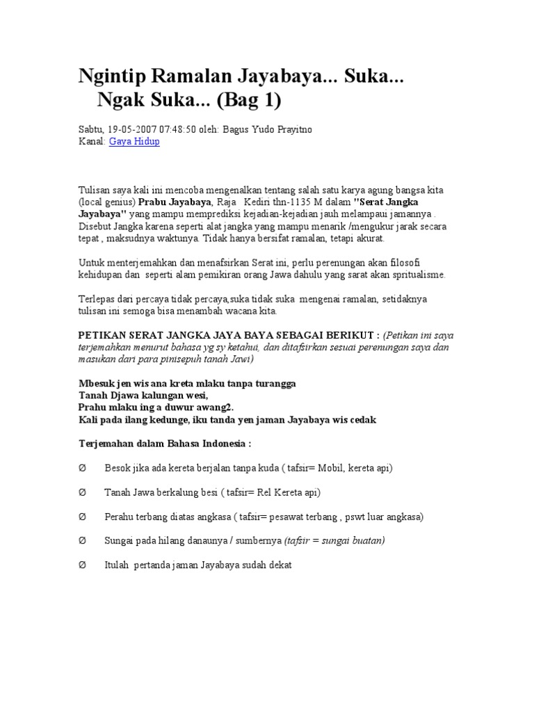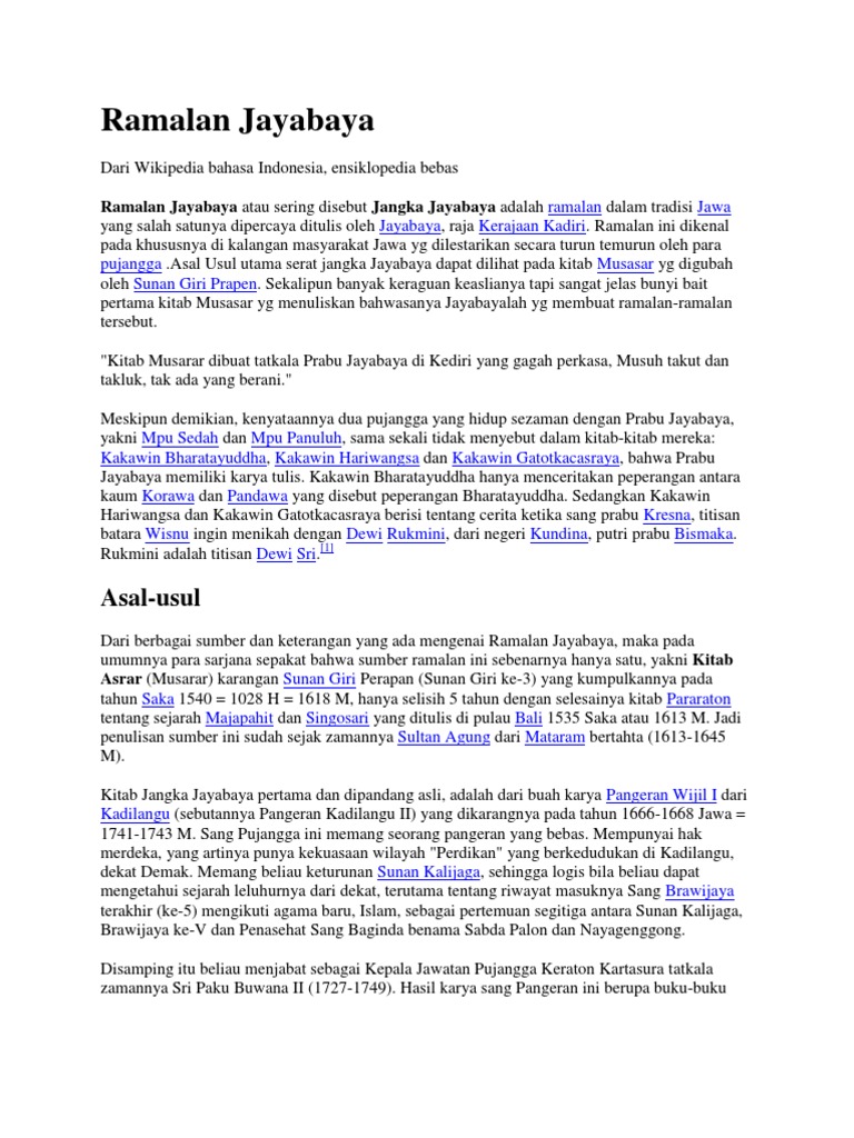 Relevansi Ramalan Jayabaya Dengan Indonesia Abad Xxi Hidayat Yoedoprawiro Belbuk Com
