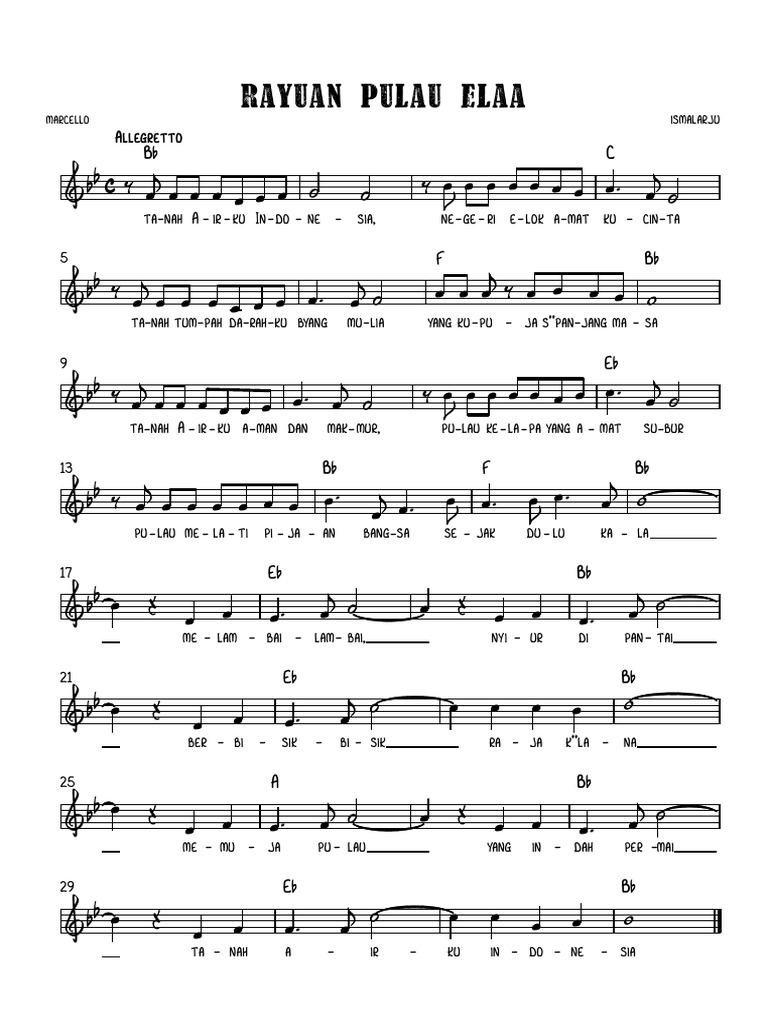 Not Angka Lirik Lagu Rayuan Pulau Kelapa Ismail Marzuki Not Angka Lagu Pianika Dan Piano
