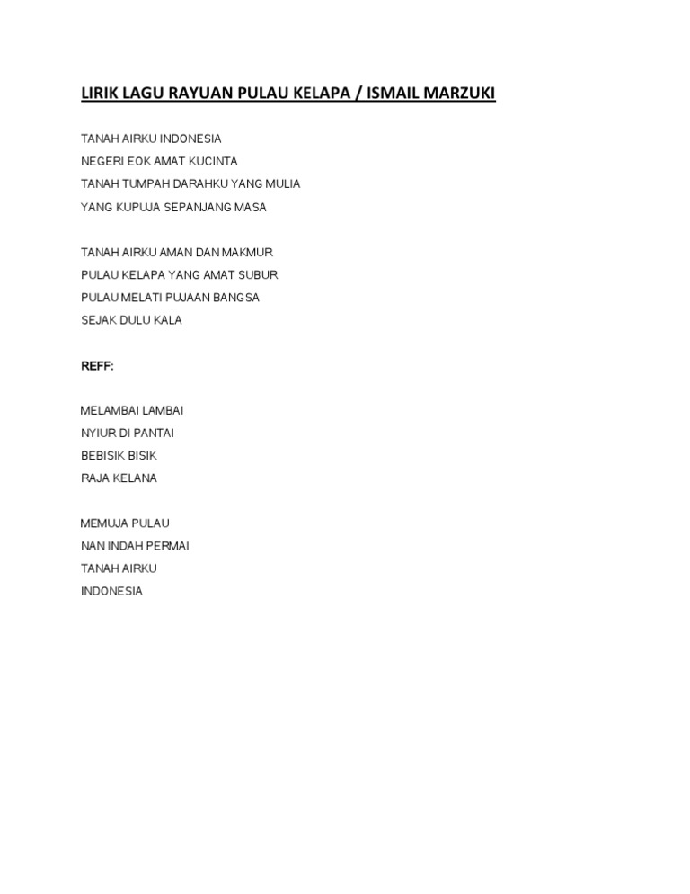 Rayuan Pulau Kelapa Merupakan Salah Satu Lagu Wajib Lagu Wajib Adalah Brainly Co Id