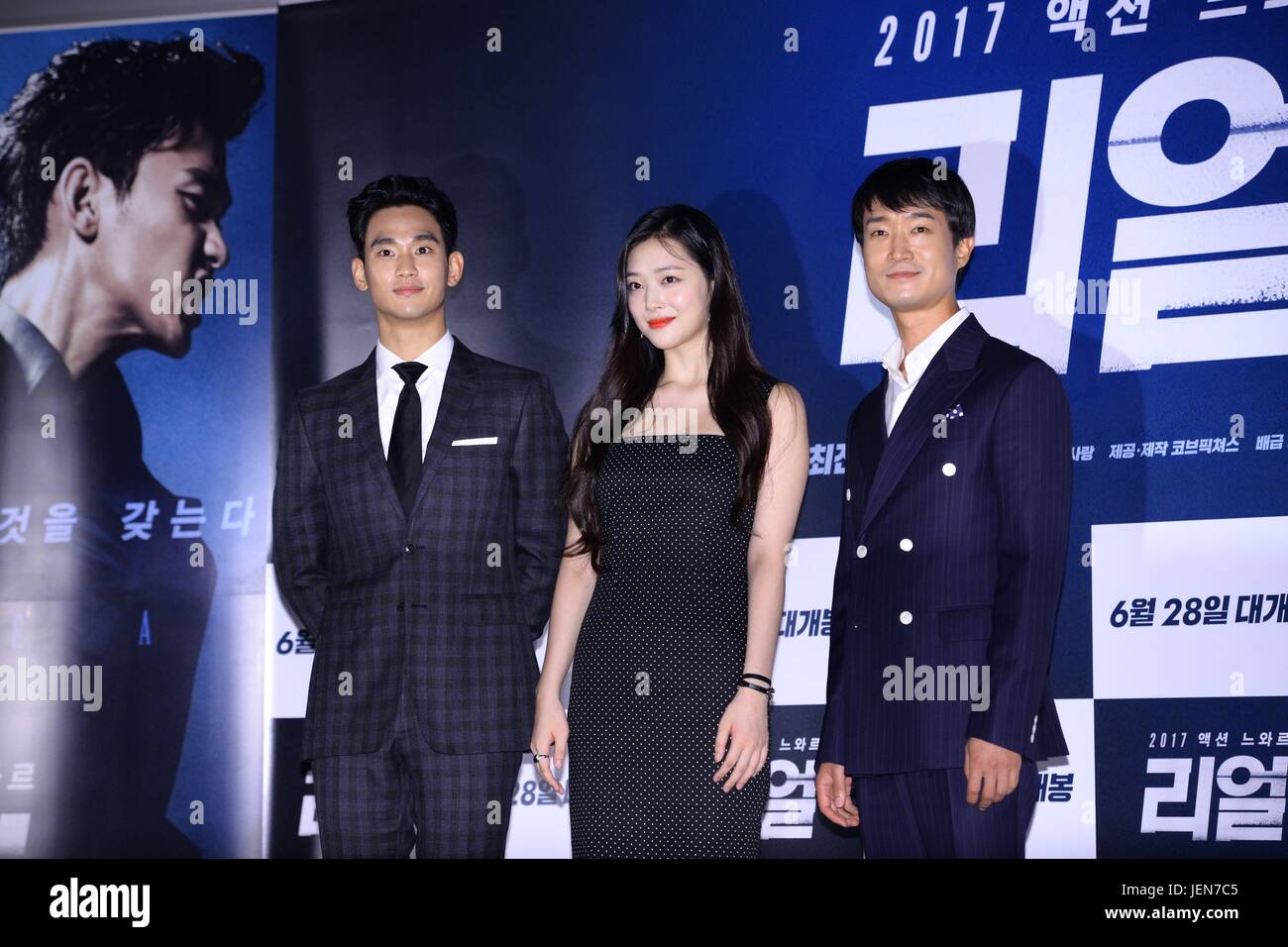 Seoul Korea 26th June 2017 Kim Soo Hyun Sulli And Jo Woo Jin Attend The Premiere