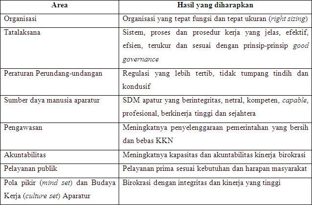 Area Perubahan Reformasi Birokrasi 2015 2019 Pemerintah Net