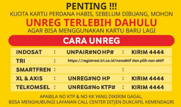 Update Cara Mudah Registrasi Dan Unreg Kartu Prabayar Melalui Sms Ke 4444 Deblog