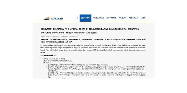 Cek Lowongan Kerja Rekrutmen Pt Kai 2021 Untuk Lulusan Sma Hingga S1 Di Recruitment Kai Id Tutup 24 September Portal Purwokerto