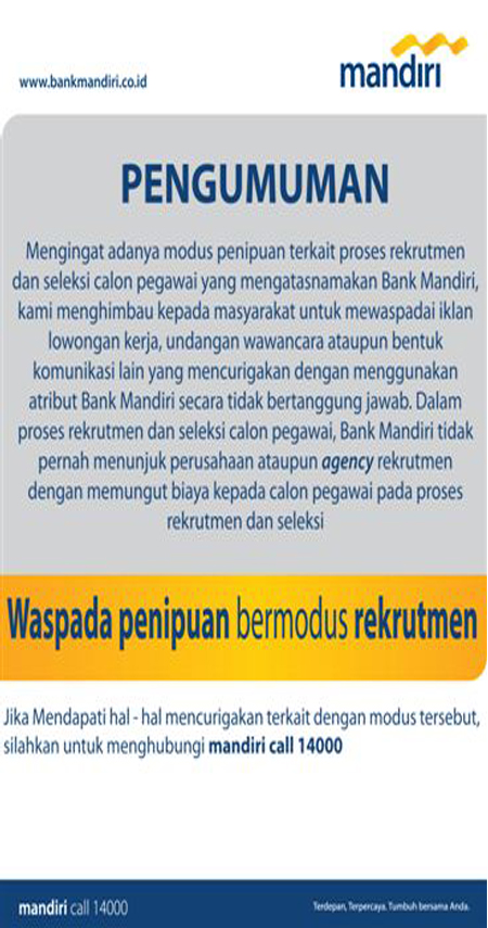Bank Mandiri On Twitter Waspadai Penipuan Perekrutan Pegawai Yang Mengatasnamakan Bank Mandiri Atau Direktur Bank Mandiri Https T Co Oemintksqv Twitter