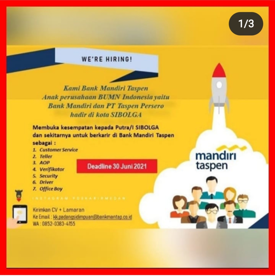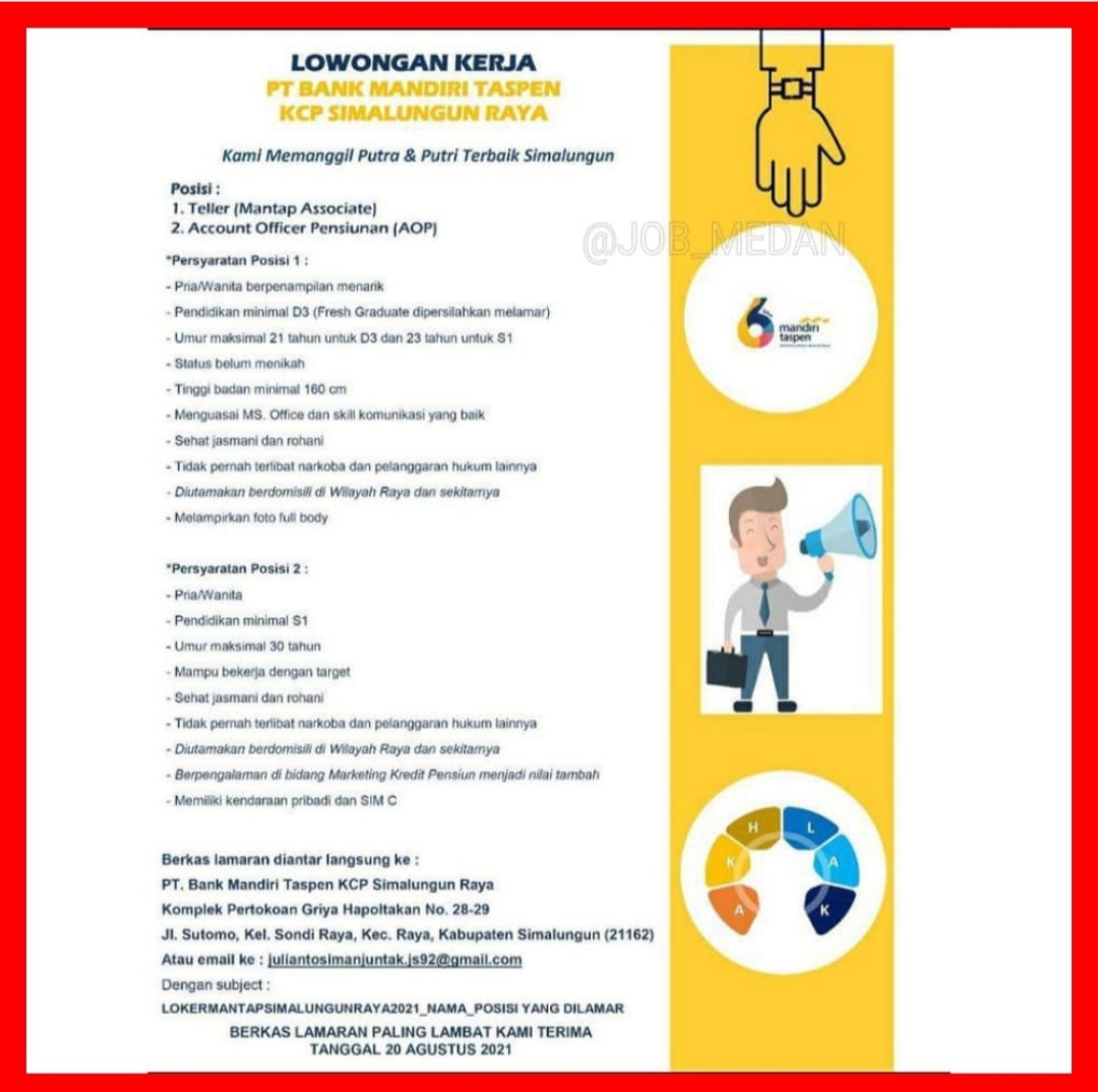 Lowongan Kerja Bank Bumn Terbaru Juni 2021 Di Bank Mandiri Taspen Sibolga Medanloker Com Lowongan Kerja Medan