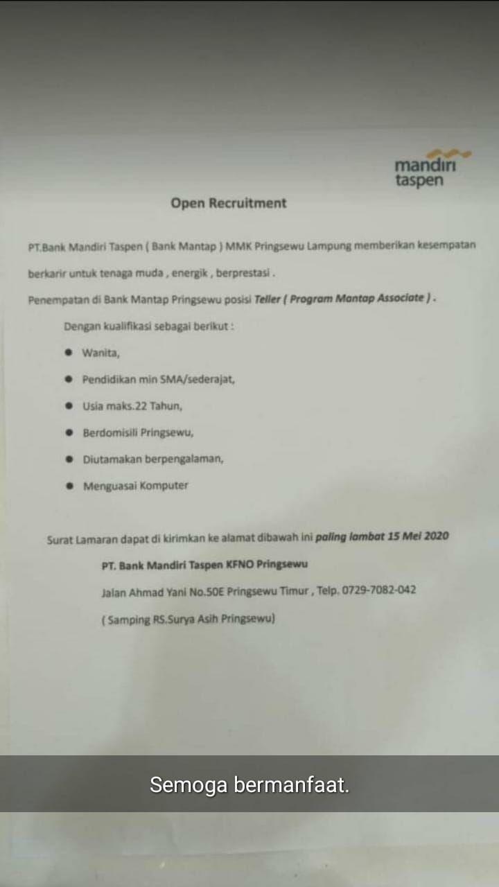 Vp Jobs Lowongan Kerja Bank Mandiri Taspen Lampung Februari Tahun 2020 Viral Petang News Akurat Terpercaya Dan Berimbang