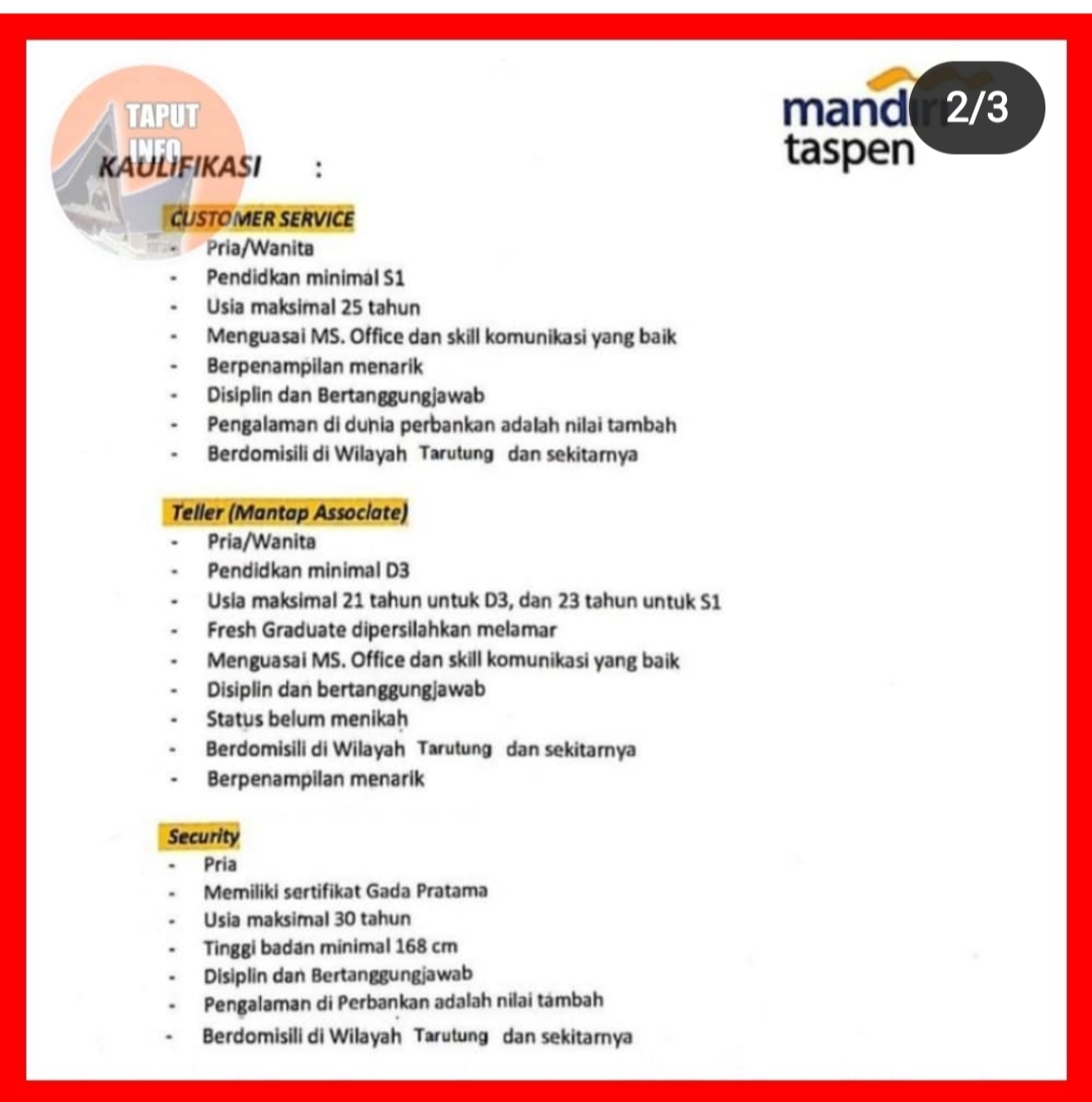 Mandiri Taspen Berbagi Informasi Lowongan Kerja