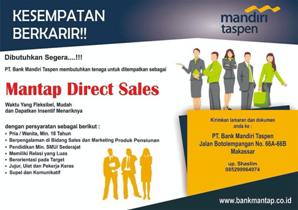 Lowongan Kerja Mantap Direct Sales Bank Mandiri Taspen Gorontalo