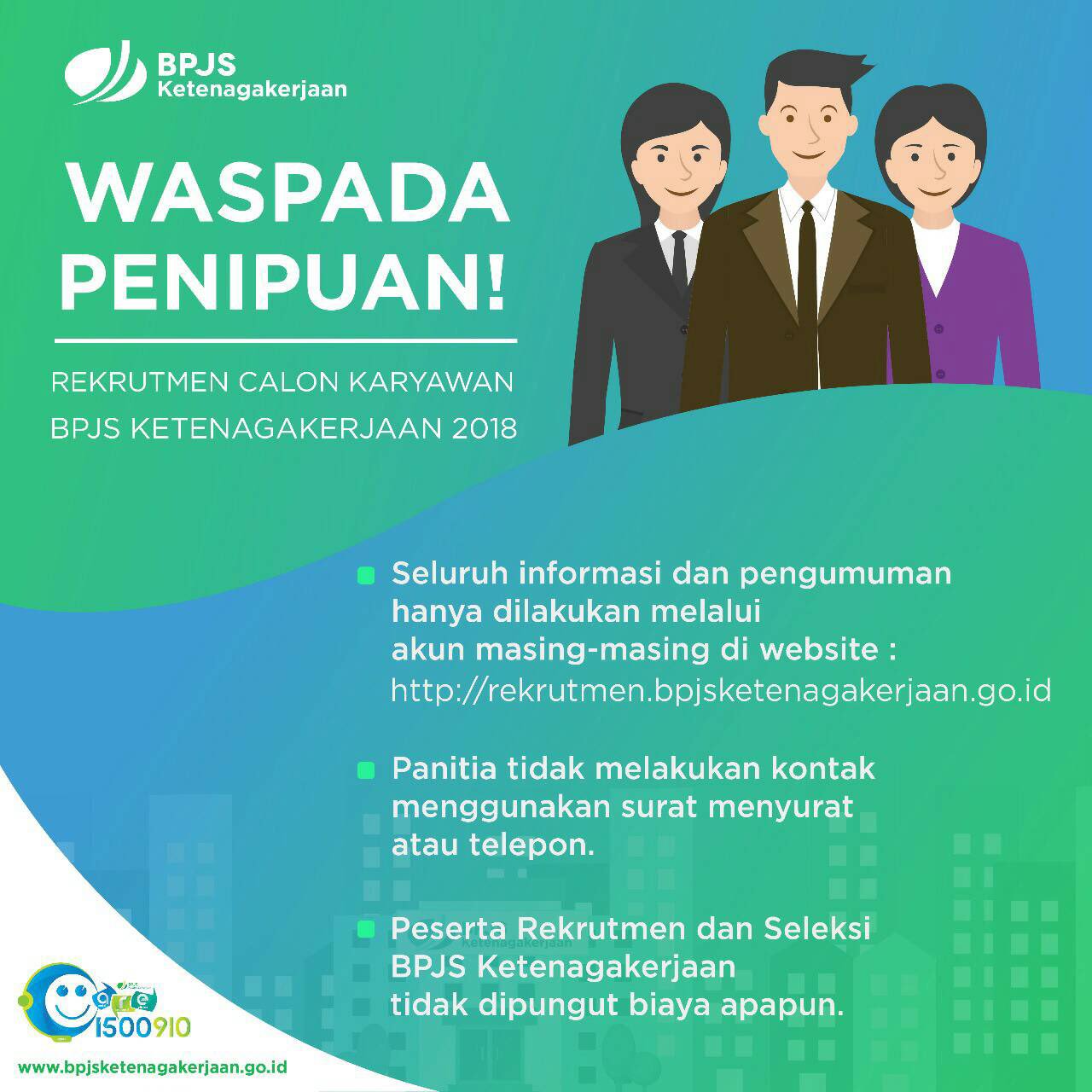 Bpjs Ketenagakerjaan On Twitter Waspadai Terhadap Penipuan Yang Mengatasnamakan Bpjs Ketenagakerjaan Seluruh Proses Rekrutmen Dan Seleksi Calon Karyawan Bpjs Ketenagakerjaan Hanya Menggunakan Kanal Resmi Dan Tidak Dipungut Biaya Bpjsketenagakerjaan