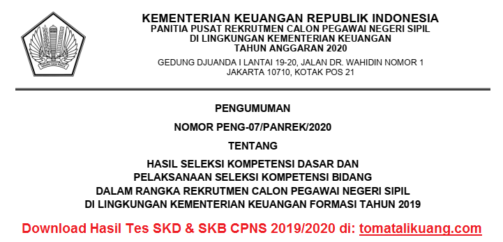 Rekrutmen Kemenkeu Go Id Download Hasil Skd Cpns Kemenkeu 2020 Pdf Hasil Skd Cpns 2019