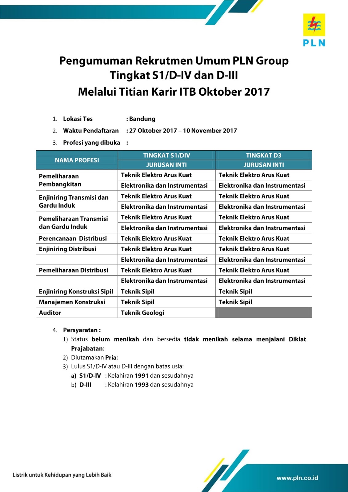 Pln Jogja Na Tviteru Rekrutmenpln Tingkat Smk Sma 13 23 September 2016 Syarat Https T Co 3xeojoz578 Daftar Https T Co 0voe1tjher