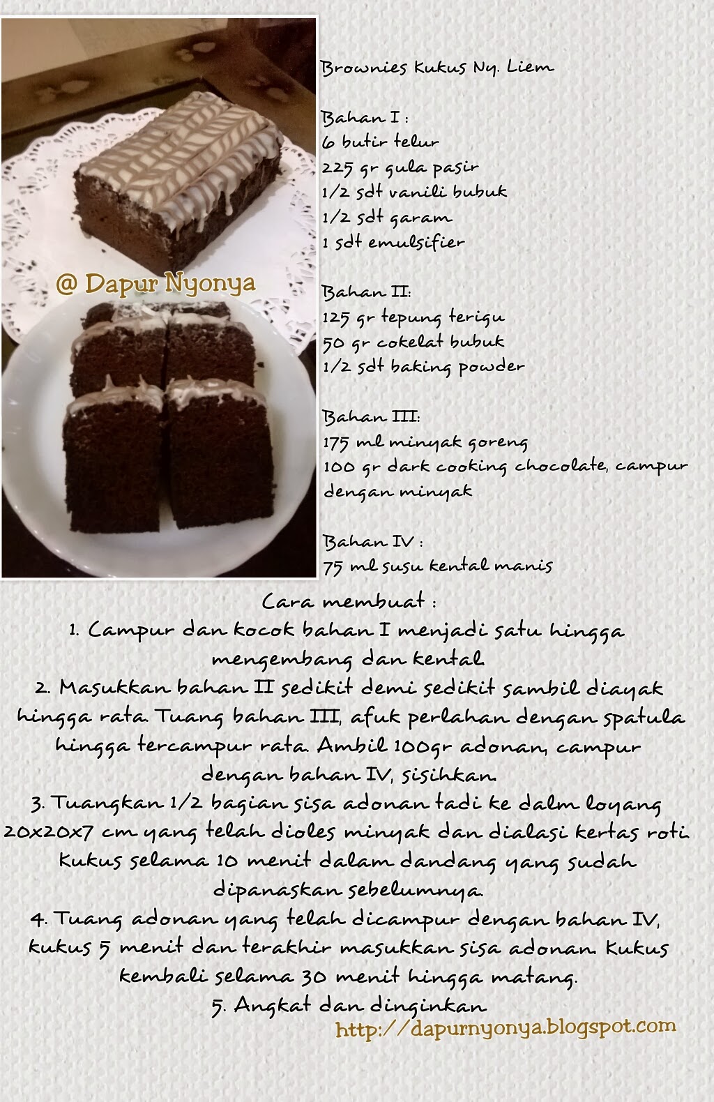 Resep Brownies Kukus Ny Liem Atmago