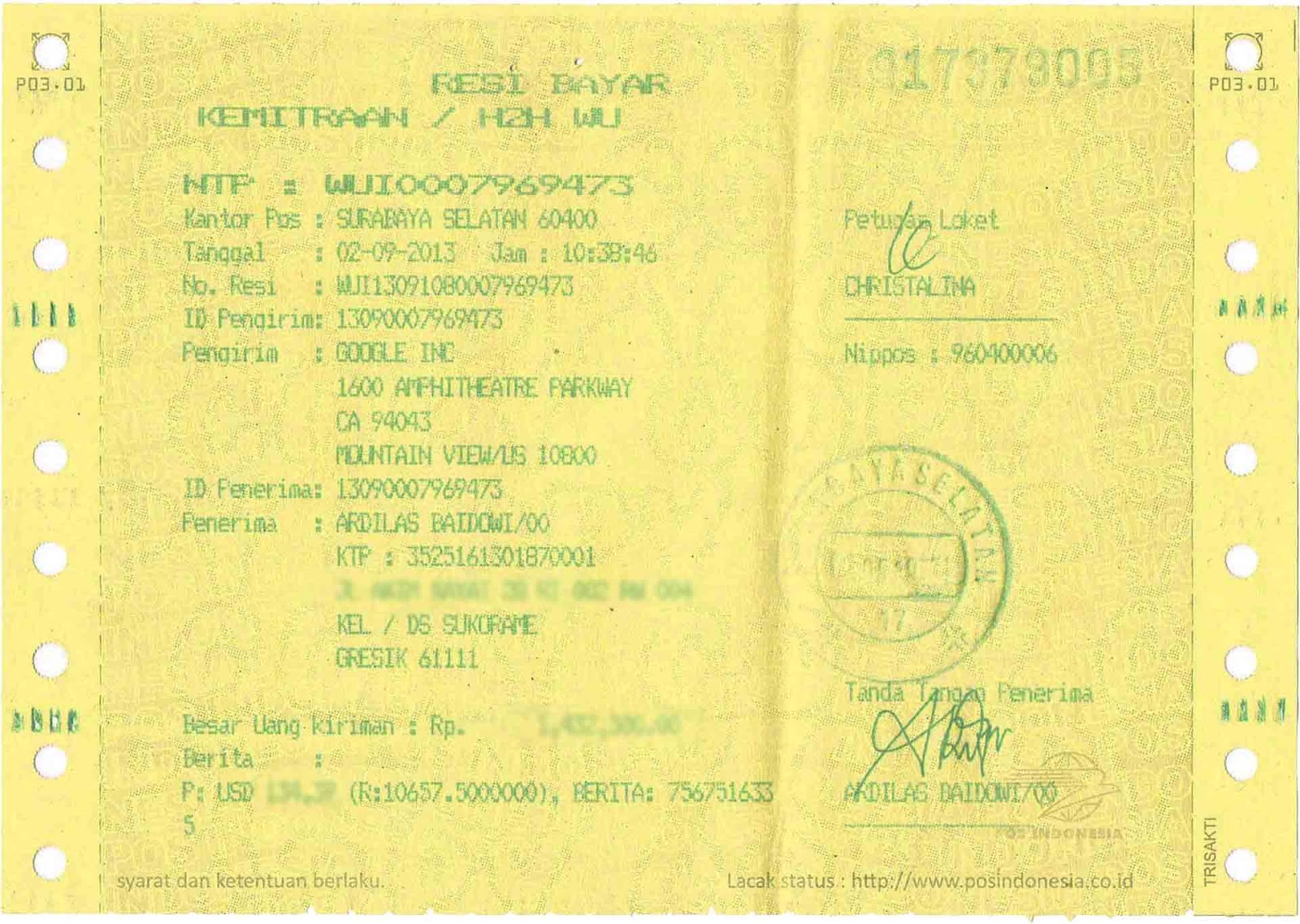 Cara Ambil Uang Google Adsense Via Wunion Di Kantor Pos