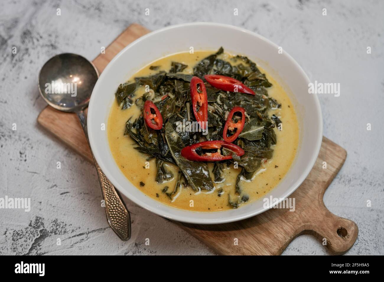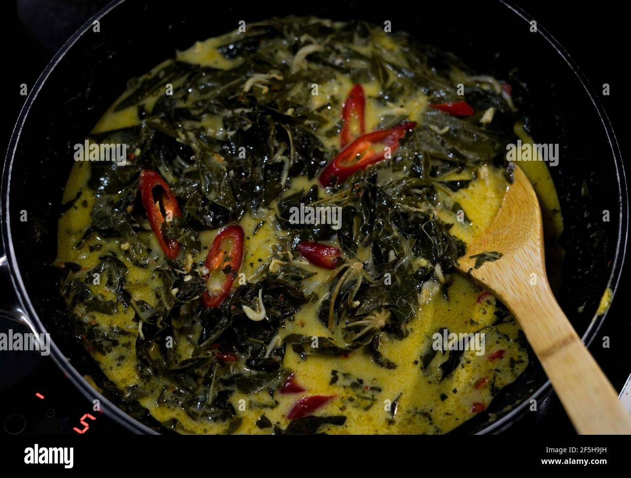 Indonesian Food Made From Tapioca Or Cassave Leaves Cooked With Coconut Milk Gulai Daun Singkong Stock Photo Alamy