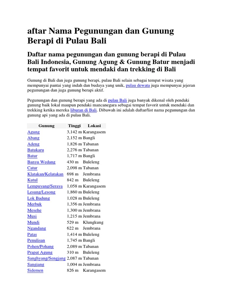 Daftar Nama Pegunungan Dan Gunung Berapi Di Pulau Bali
