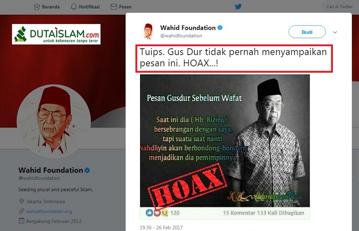 Hoax Foto Gus Dur Sebut Nahdliyyin Akan Jadikan Habib Rizieq Pemimpin
