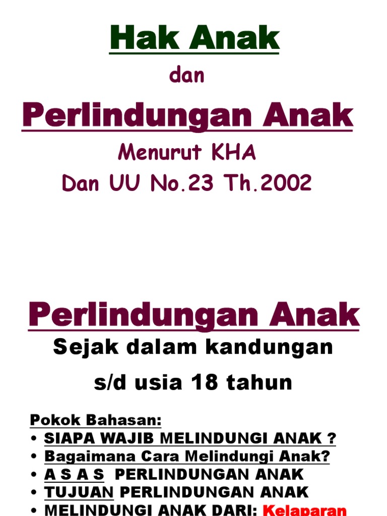Hak Anak Dan Perlindungan Anak Menurut Kha Dan Uu No 23 Th Ppt Download